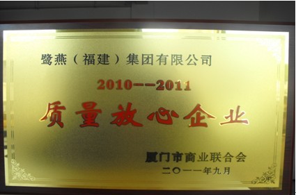 日前,廈門市商業聯合會發出表彰通報,授予鷺燕(福建)集團有限公司等單位2010-2011年度“質量放心企業”的稱號。