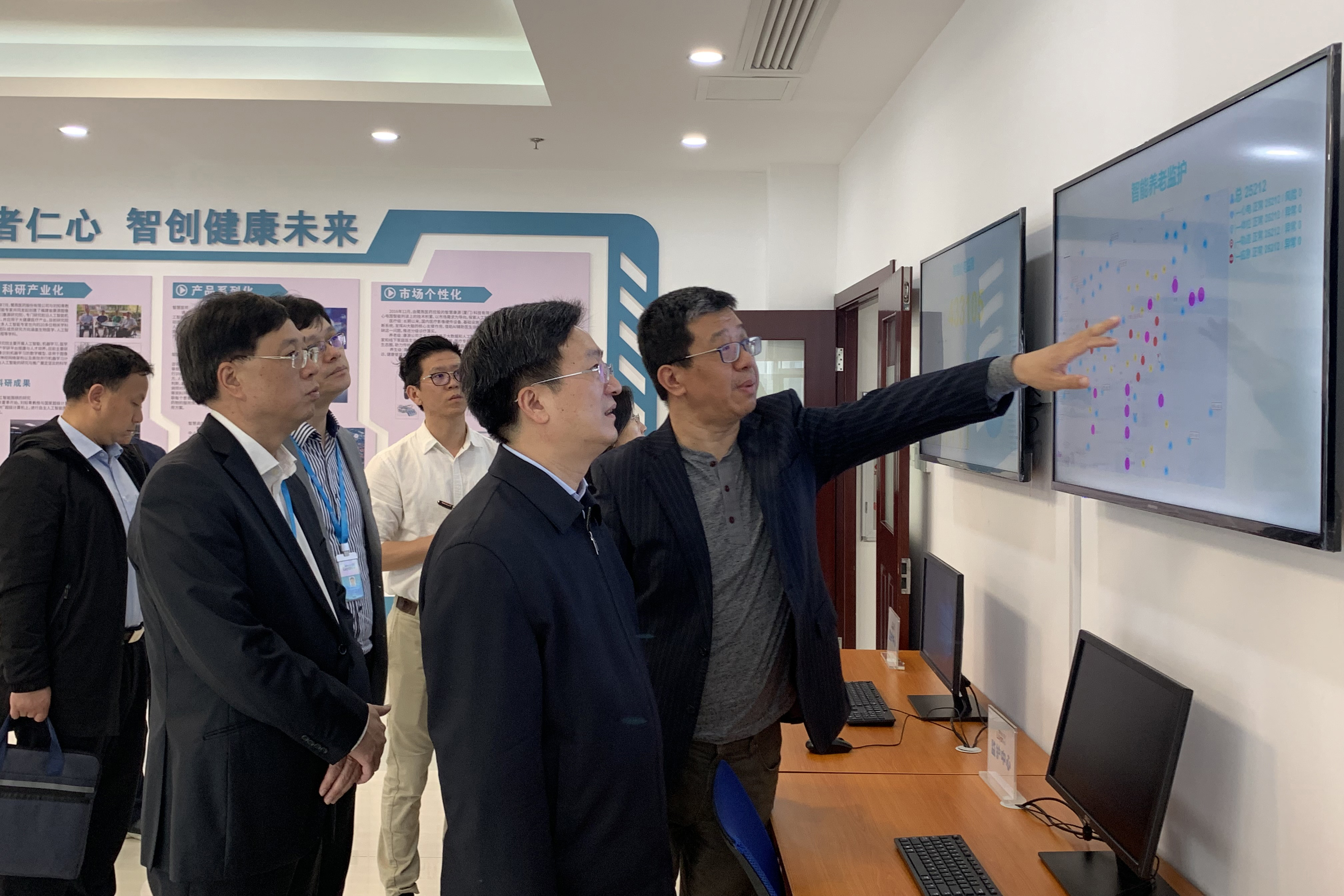 隨后,施副局長一行參觀了鷺燕醫藥人工智能產品體驗館,鷺燕醫藥首席科學家劉知青教授重點介紹了鷺燕醫藥人工智能技術在醫療領域的創新應用,施副局長親自體驗了鷺燕醫藥旗下智慧康源科技公司推出的智能心電檢測計。